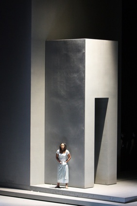 Bühnenbildes aufgelöst. Die grauen Steinwände des Tempels entschweben in die Höhe, zurück