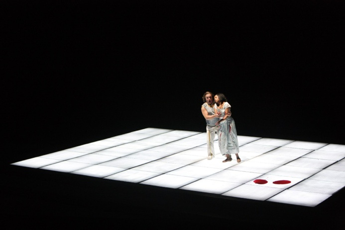 bleibt das unglückliche Liebespaar in der überwältigenden Schwärze des leeren Bühnenraums.