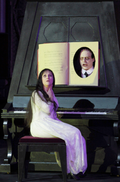 Sie singen den Schlußchor und deuten anklagend auf Hoffmann. Nur weil er sich von Ihnen nicht lösen kann, verliert er im letzten Moment alles, auch Stella. die Schreckgespenster in seinem Kopf lassen ihn nicht los. Und die Muse Niklaus verschwindet mit den letzten Tönen der Musik zurück in den Kabinettschrank.